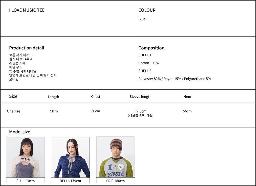 총장 73cm / 가슴 56cm / 소매길이 77.5cm (레글런 소매 기준)