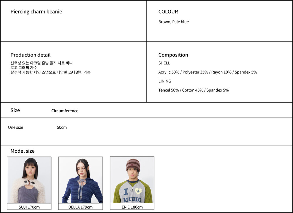 Acrylic 50% / Polyester 35% / Rayon 10% / Spandex 5%