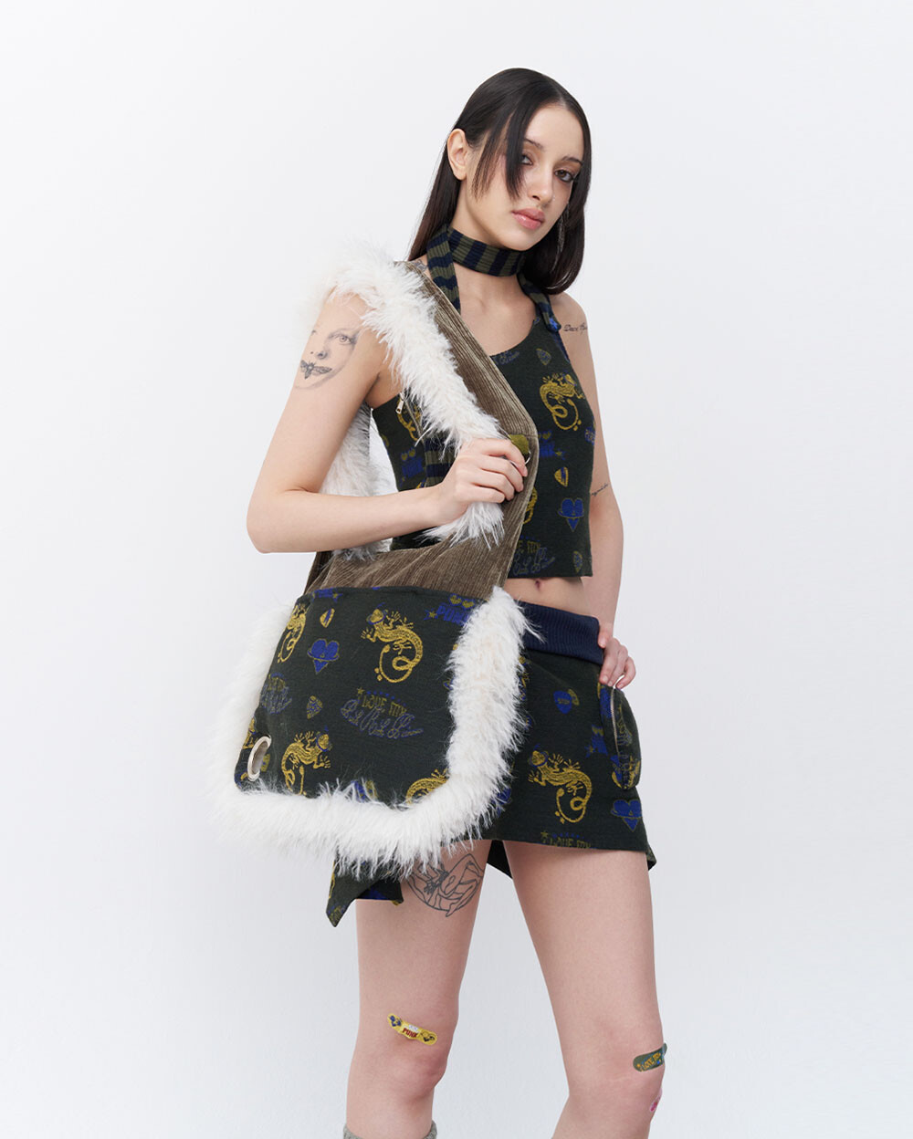 Punky lizard jacquard bag Khaki