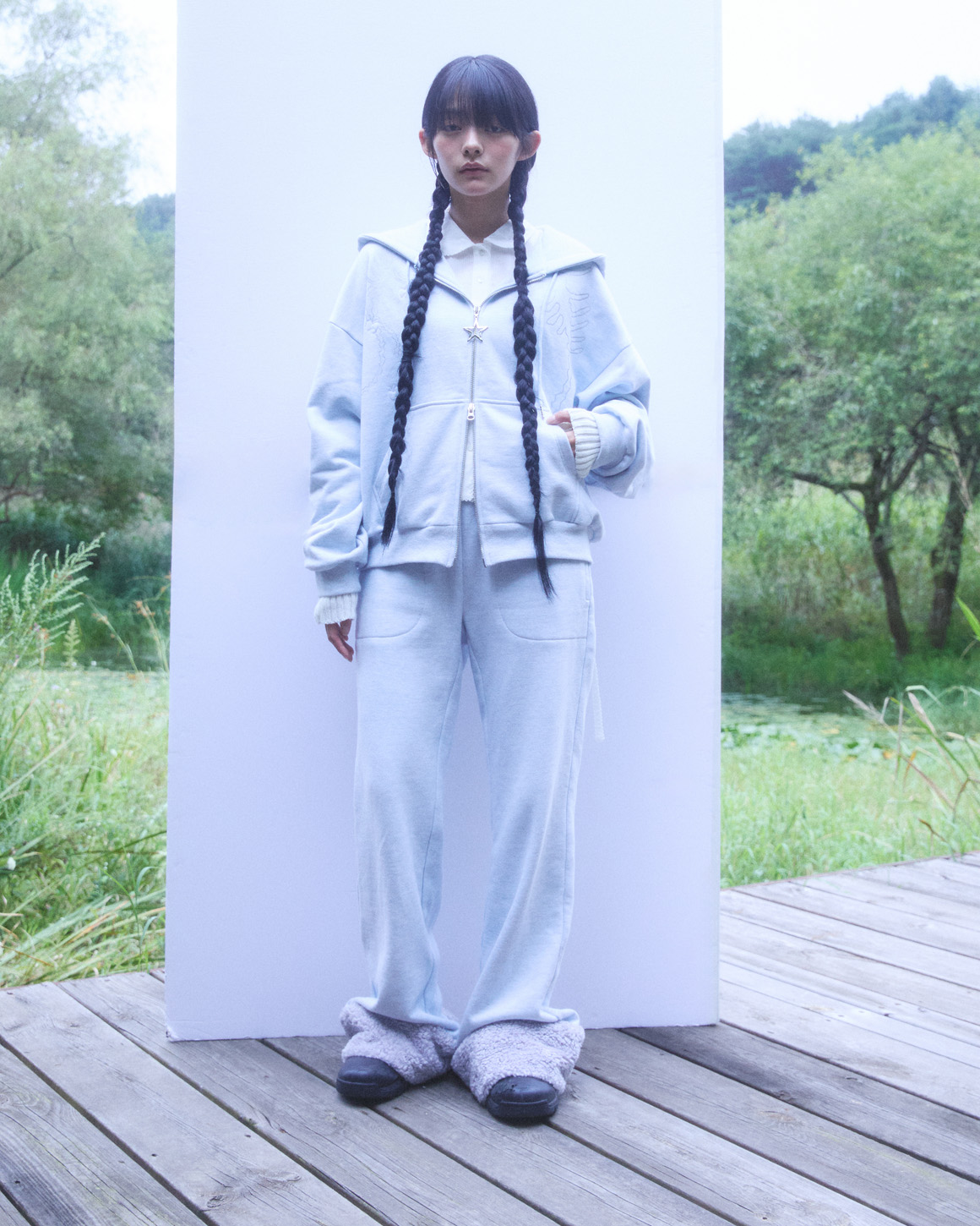 [pre-order/10월말 발송] Bony-tail zip-up hoodie Blue Melange